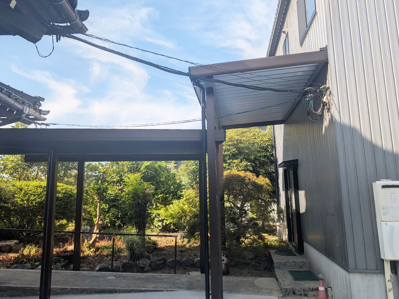 母屋から車庫まで濡れずに渡れるテラス屋根