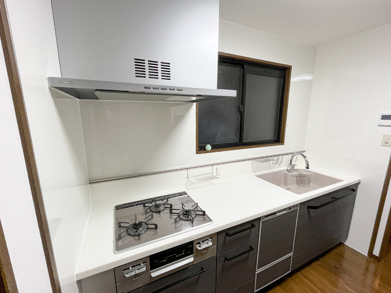 キッチン:トクラス ベリー 食洗機:リンナイ フロントオープン食洗機 クロス:サンゲツ SPクロス |