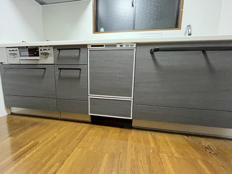 何と言ってもフロントオープンの食洗機です。大容量タイプなので沢山の食器が一度に洗えて家事の時短になりますね。