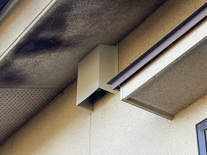 「換気扇の開口から外気が入ってきて寒い」とのことで見させていただいたところ、換気の開口にウェザーカバーがついていませんでした。