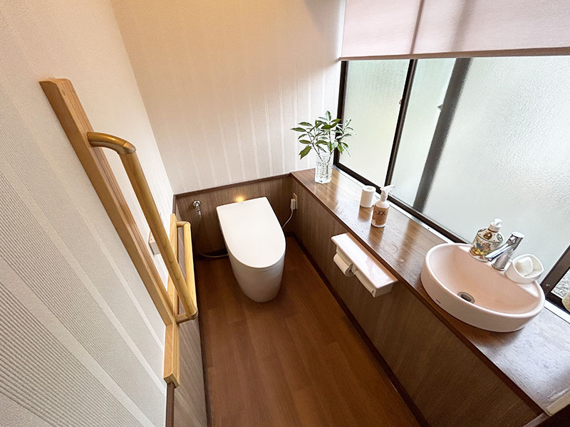 既存トイレが汚れてきたことと、娘様が出産で帰ってくるので、せめてトイレ内はきれいにしたいとのことでご依頼いただきました。